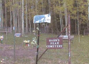 The 2001 photos on this page are courtesy of Joan Miller, who is a descendant of Hahn’s Peak pioneer, Charles Edward Blackburn. Thanks for the great photos, Joan!